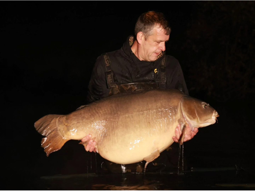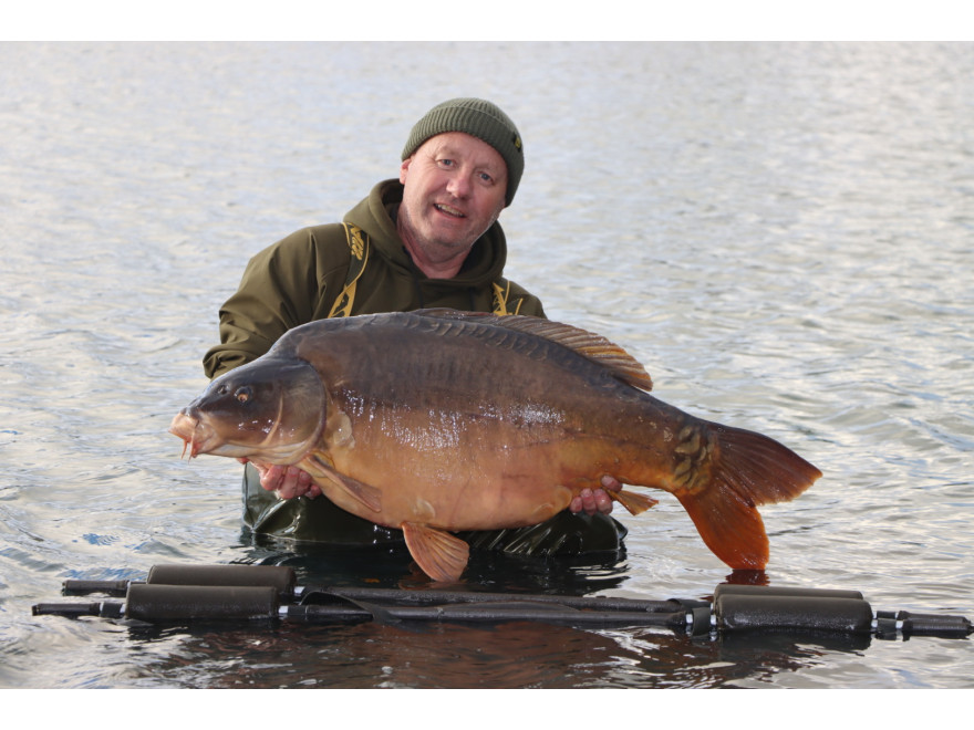 Short session success in the shape of this big common for Thierry on a hard venue due to being infested with crayfish. Light scattering of Big Fish Mix along with matching wafters producing this big common and a big mirror.